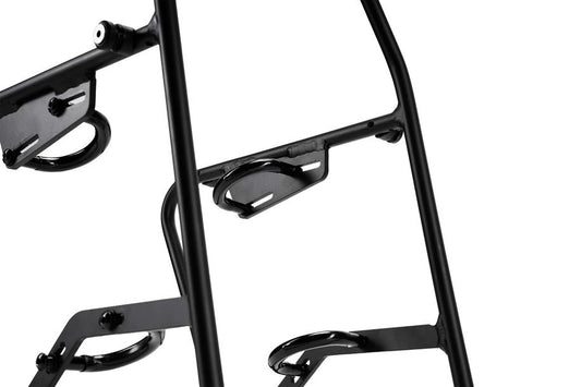 • Der ACID Gepäckträger SIC 2.0 RAIL schwarz von ACID ist ein stabiler Gepäckträger für das Hinterrad mit SIC2.0-Schnittstelle und Befestigungspunkten für Packtaschen oder Gepäck, der für die Montage über dem Hinterrad konzipiert ist und auf weißem Hintergrund abgebildet ist.