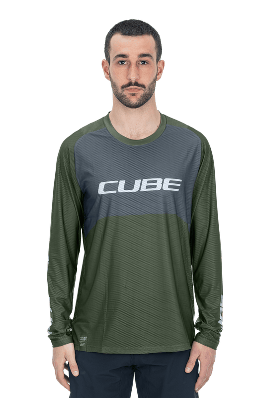 CUBE VERTEX Rundhalstrikot TM langarm olive´n´grey