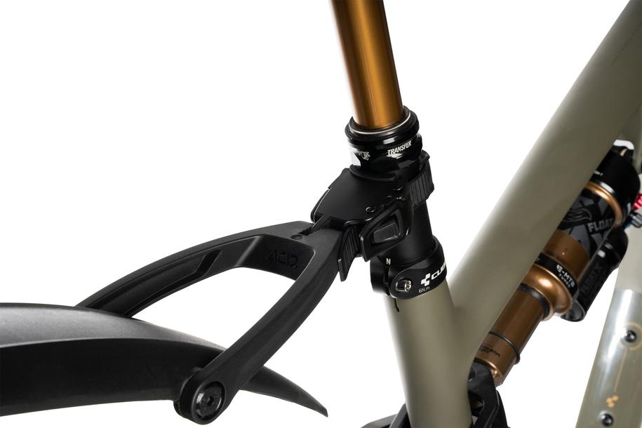 Mit dem etablierten ACID PRO Vane Ratschen Anschluss ermöglichen wir eine schnelle Montier- und Demontierbarkeit. Das Band wird um die Sattelstange gelegt und mit dem Ratschenhebel angezogen. Durch das einfache Betätigen eines Buttons wird das Schutzblech entriegelt und ermöglicht dem Fahrer eine flexible und schnelle Einsetzbarkeit.