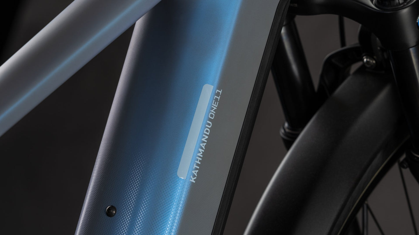 Das CUBE Kathmandu Hybrid ONE11 HPC vereint unser gesamtes Know-how aus der Entwicklung potenter Fullsuspension- und robuster Touring-Bikes in einem genialen Rahmen: die Basis eines völlig neuartigen Bosch-betriebenen Weltenbummlers auf zwei Rädern. Das Besondere sind zweifellos die 100 mm Federweg des überaus ästhetisch ins Design eingefügten Trunnion Dämpfers sowie der ebenso formschön ins hintere Rahmendreieck aus Aluminium integrierte Gepäckträger IC 3.0. Im Hauptrahmen aus High Performance Carbon findet der kraftvolle Bosch CX Antrieb samt 800 Wh starkem PowerTube Akku Platz. Unsere interne Zugverlegung unterstreicht den cleanen Look des Chassis', das Schaltauge ist UDH-kompatibel, außerdem ist ein Kettenschutz serienmäßig mit an Bord. Kurz: alles dran, was Bike-Abenteuer schöner – und komfortabler – macht!